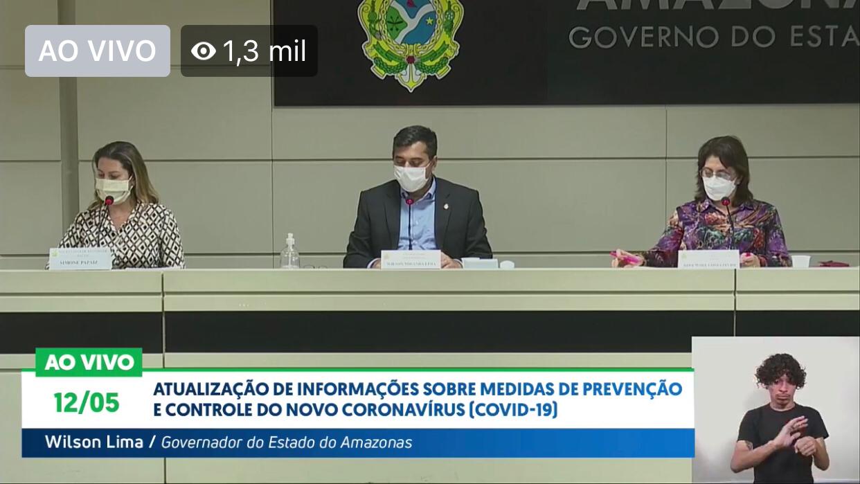 O Governo do Amazonas anunciou, na noite desta terça-feira (12/5), decreto que prorroga a suspensão das atividades não essenciais no Estado. O novo prazo termina no dia 31 de maio e novo decreto endurece as medidas de calamidade pública. O anúncio foi feito pelo governador Wilson Lima, em coletiva on-line.