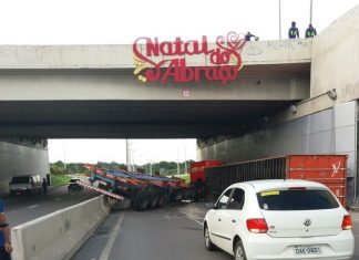 Carreta tomba em viaduto e interdita via para aeroporto de Manaus